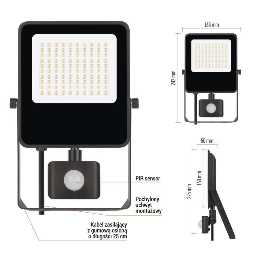 Naświetlacz LED VISIO z czujnikiem PIR 50 W, neutralna biel