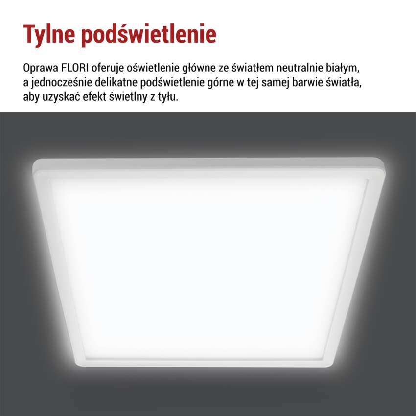 Oprawa LED FLORI kwadratowy, biała, 18W, neutralna biel