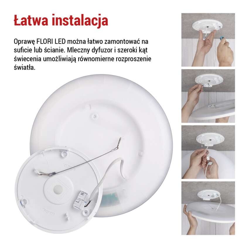 Okrągła oprawa FLORI dostępna jest w wersji białej i czarnej. Obie wersje oferują dwie świetne opcje.