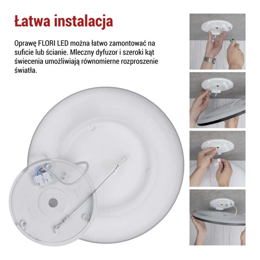 Oprawa FLORI Essential jest idealna do oświetlenia wnętrz. Ma ponadczasowy design i jest łatwa w montażu dzięki specjalnej konstrukcji. Funkcja podświetlenia zapewnia, że oprawa świeci zarówno w górę, jak i w dół, tworząc przyjemną atmosferę. Zarówno plastikowy korpus, jak i dyfuzor mają stopień ochrony IP20, dzięki czemu nadają się do wnętrz.