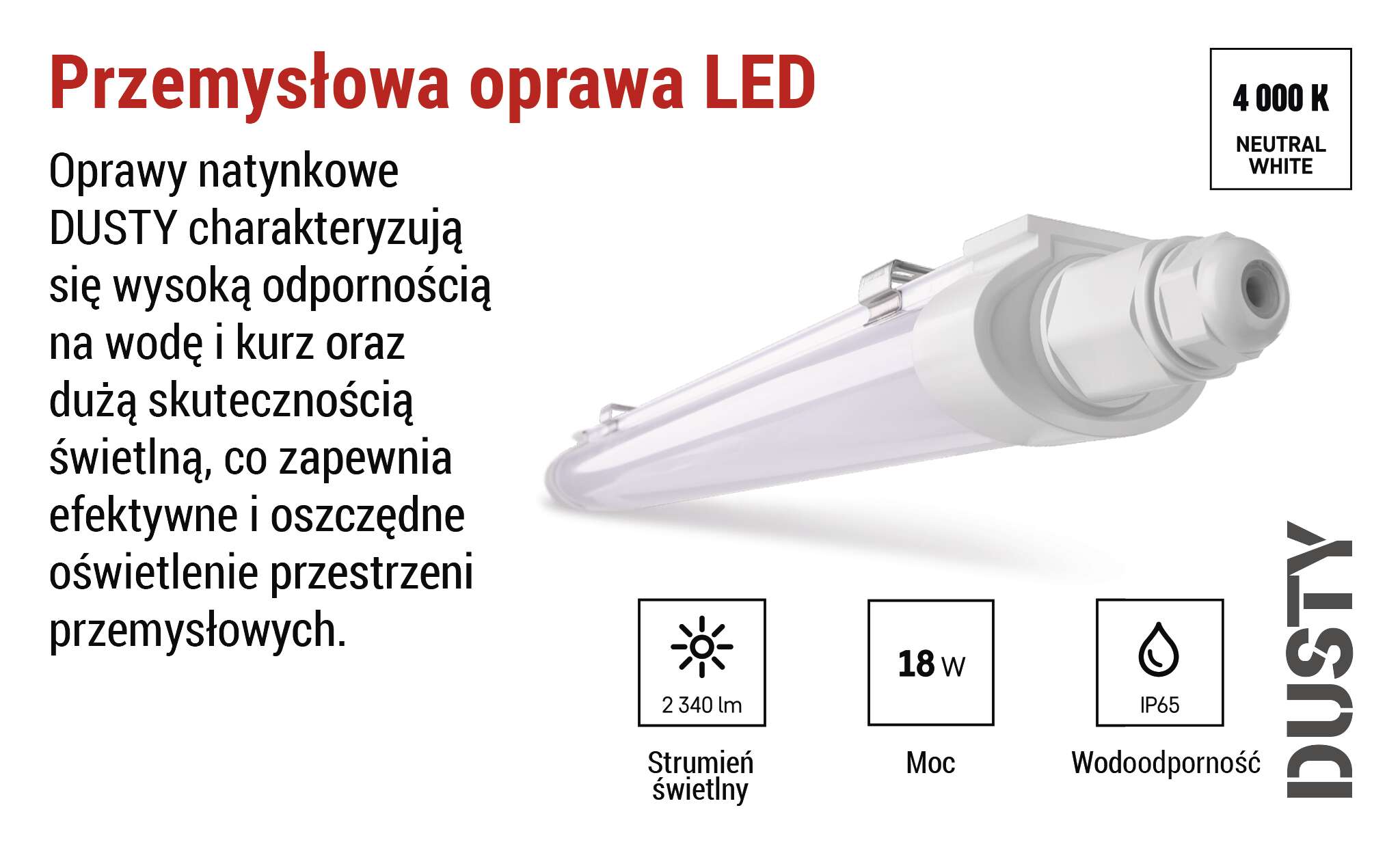 Neutralna barwa światła stwarza idealne warunki do pracy i codziennych czynności. Wygląda naturalnie, nie męczy oczu i pasuje do szerokiej gamy środowisk - od biur i sklepów po obszary przemysłowe. Wszechstronny wybór, który zawsze zachowuje właściwą równowagę między wydajnością a komfortem.