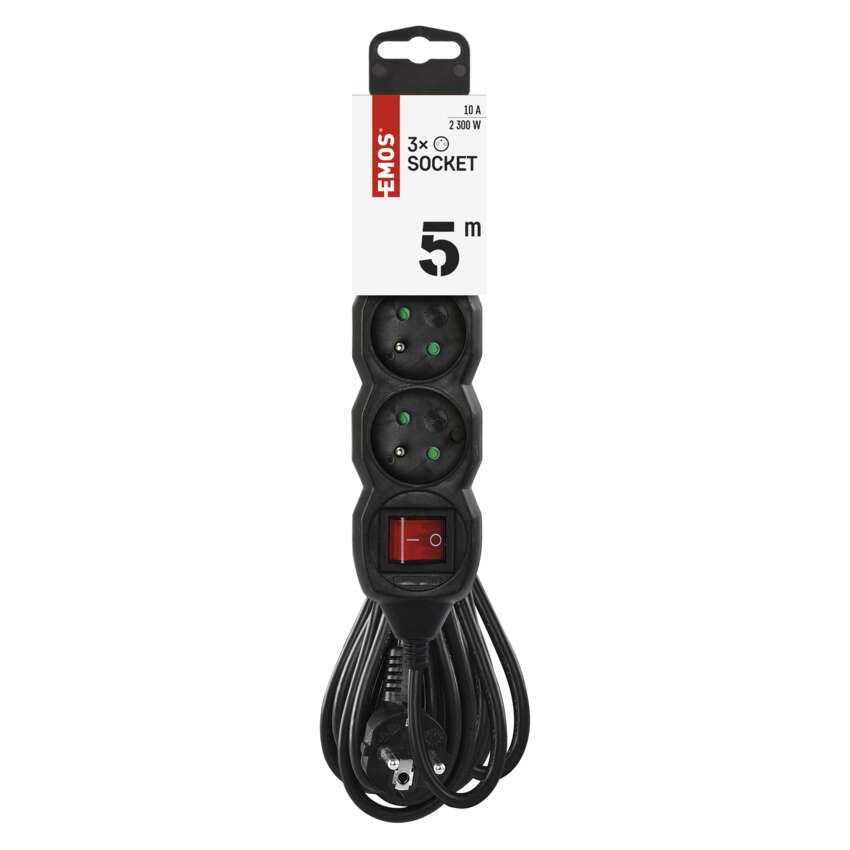 Przedłużacz 5 m / 3 gniazda / z wyłącznikiem / czarny / PVC / 1 mm2