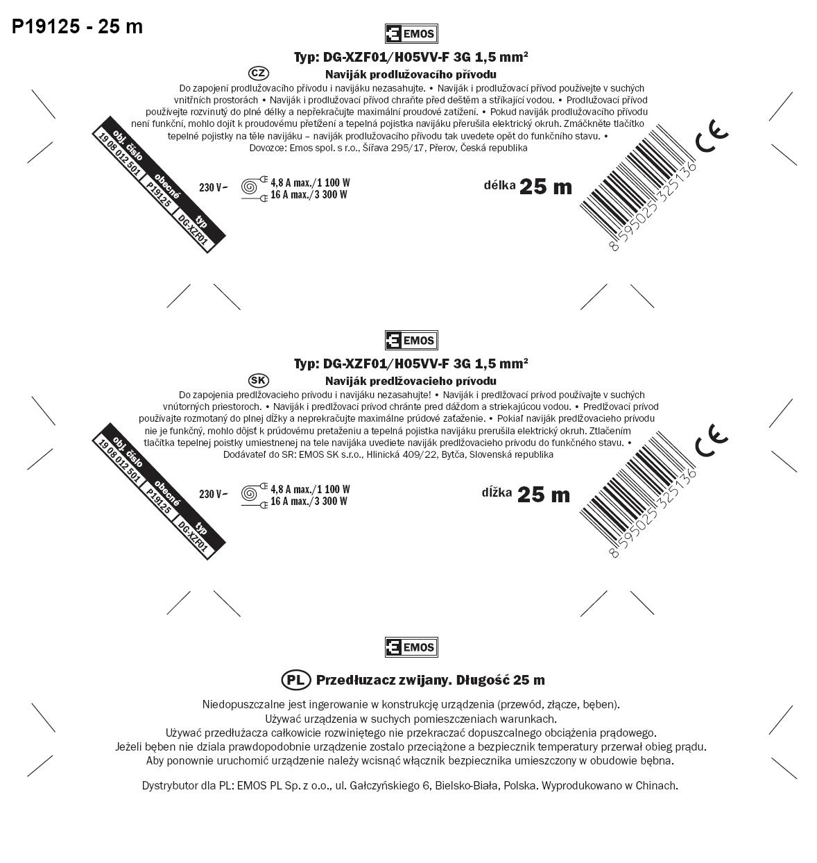 | maks. obciążenie zwiniętego przedłużacza | 4,8 A max./1 100 W |