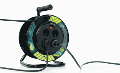Zwykłe przedłużacze na bębnie skręcają się dookoła podczas rozwijania, a dołączone przewody elektronarzędzi plączą się ze sobą.