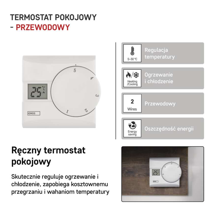 Ręczny termostat pokojowy, przewodowy, P5603R