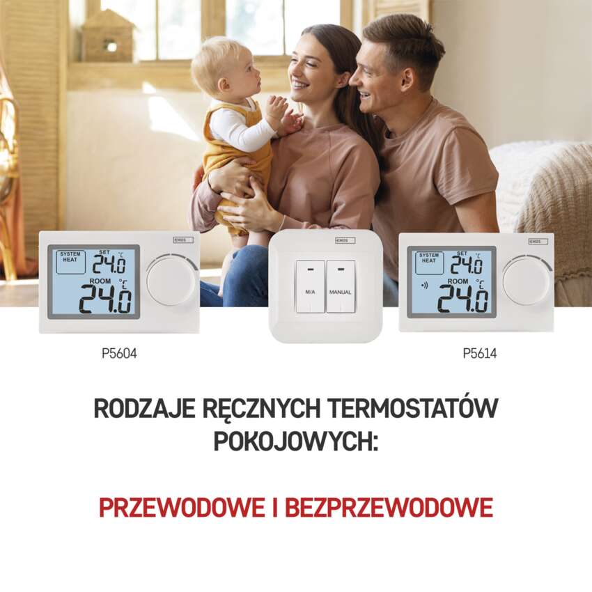 Powered by Smartsupp Ręczny termostat pokojowy, przewodowy, P5604 | EMOS.pl