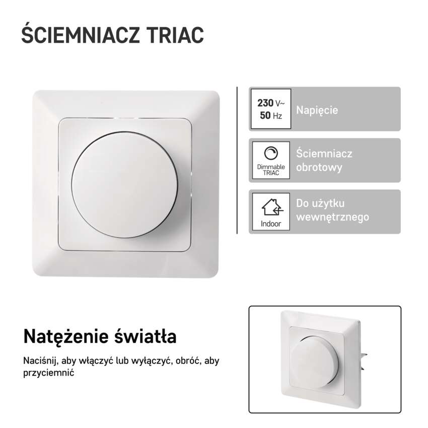 | produkt | wyłącznik ze ściemniaczem do ściemnianych żarówek LED z obrotowym sterowaniem i przełączaniem przyciskiem |