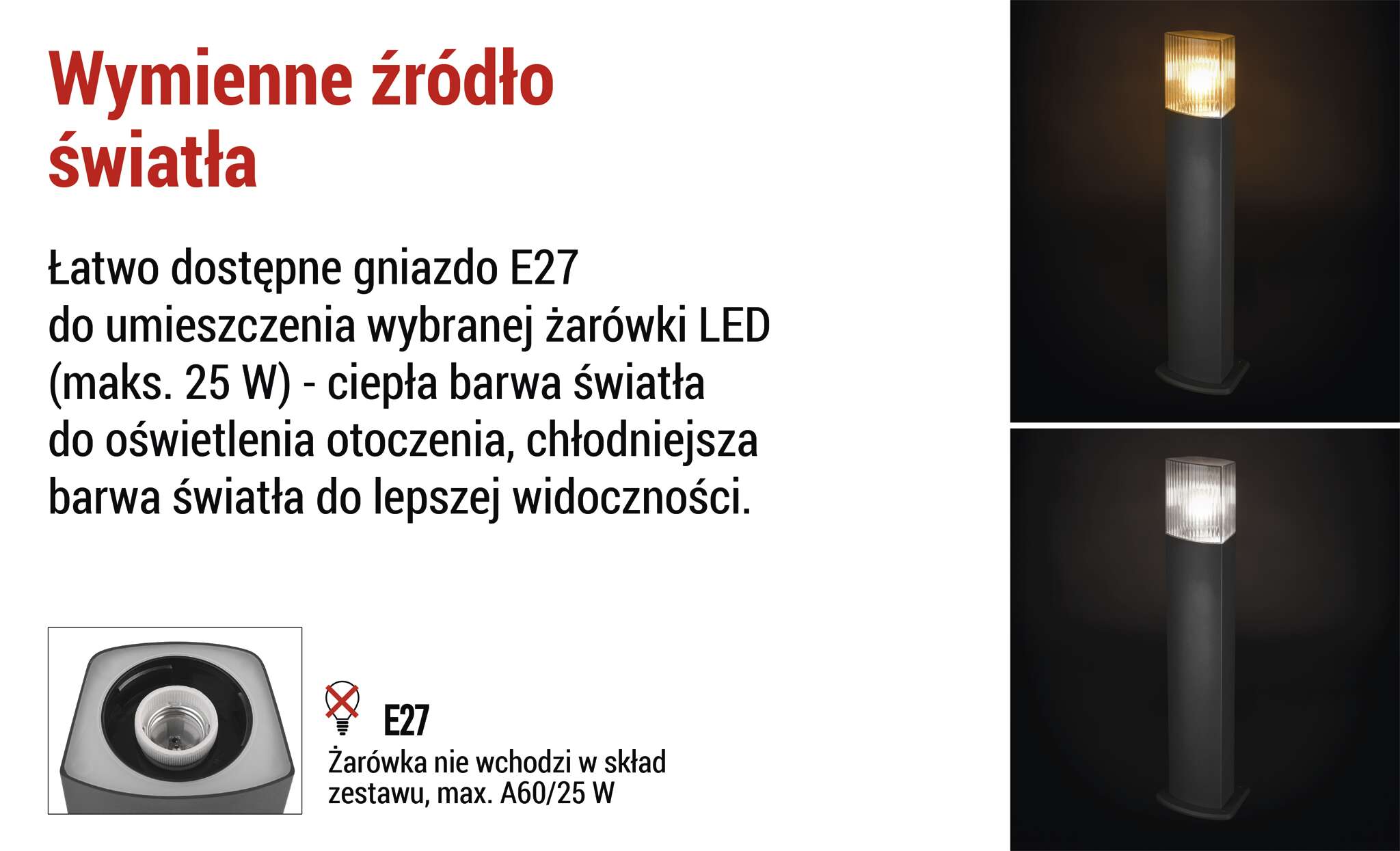✔ Wybór żarówek o barwie białej ciepłej lub zimnej