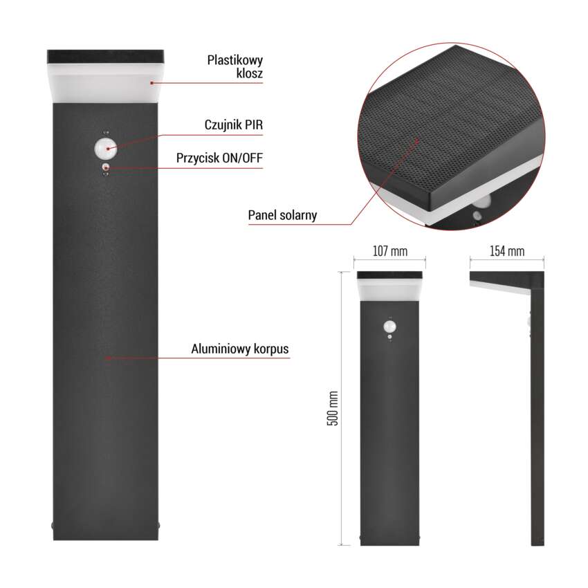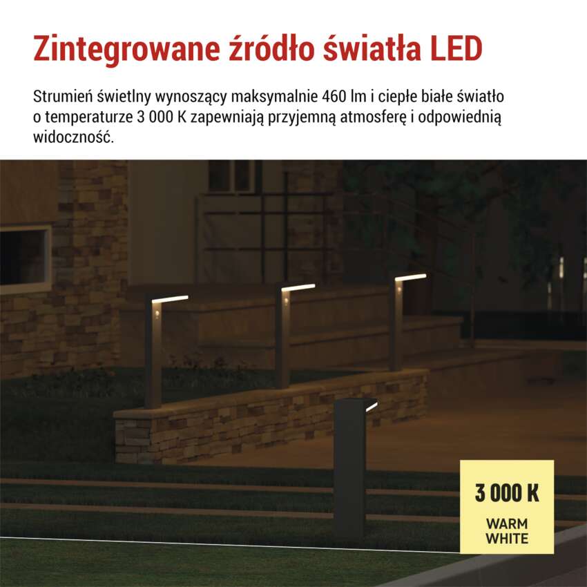Słupek oświetleniowy LED Garden VEREA solarna, ciepła biel, max 460 lm, IP44, PIR