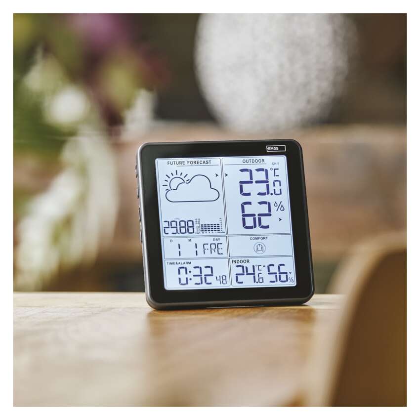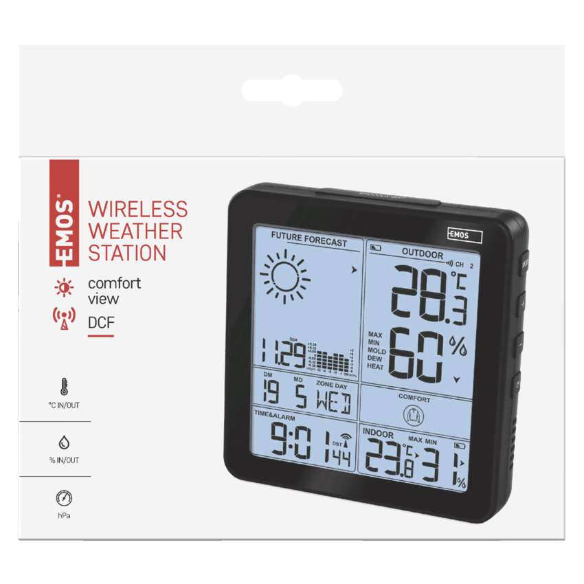 Małe termometry ścienne wiszące przy oknie to już przeszłość! Nowoczesne stacje pogodowe nie tylko podają aktualną temperaturę, ale robią znacznie więcej. Dzięki E5080 Home Wireless Weather Station nie musisz rano przed wyjściem do pracy sprawdzać nieba i próbować zgadywać, jaka będzie pogoda w ciągu dnia. Wystarczy jedno spojrzenie na wyświetlacz i już wiesz! Samodzielny pomiar wszystkich podstawowych zmiennych (temperatura, wilgotność, ciśnienie). Stacja pogodowa mierzy temperaturę zewnętrzną w zakresie od -40 °C do +70 °C oraz temperaturę wewnętrzną w zakresie od -10 °C do +50 °C, w obu przypadkach z rozdzielczością 0,1 °C. Przyjdź i zobacz, co jeszcze potrafi domowa stacja bezprzewodowa.