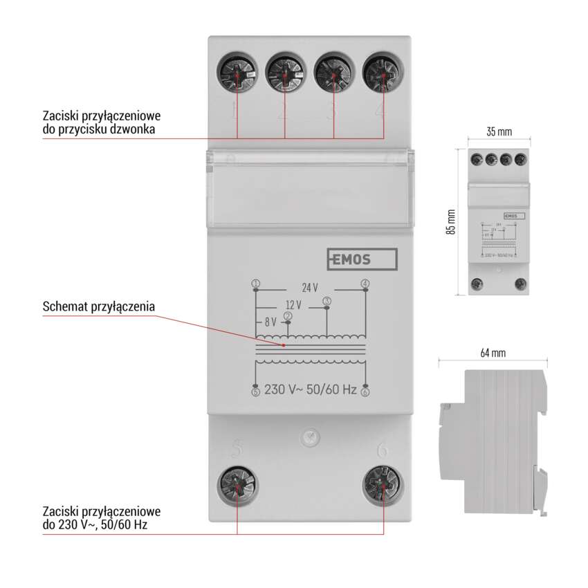 | napięcie wyjściowe | 8 V, 12 V, 24 V |