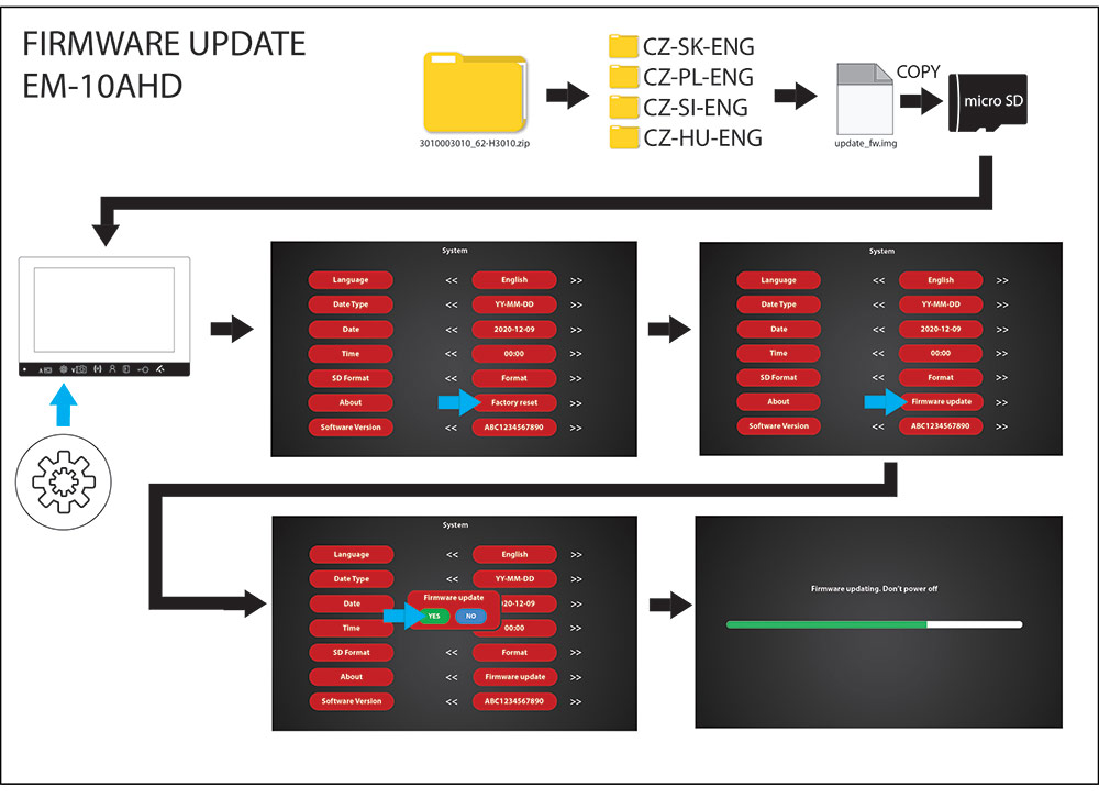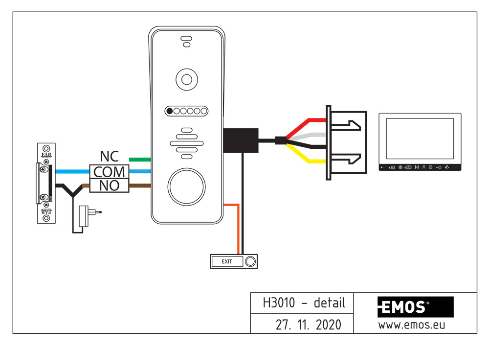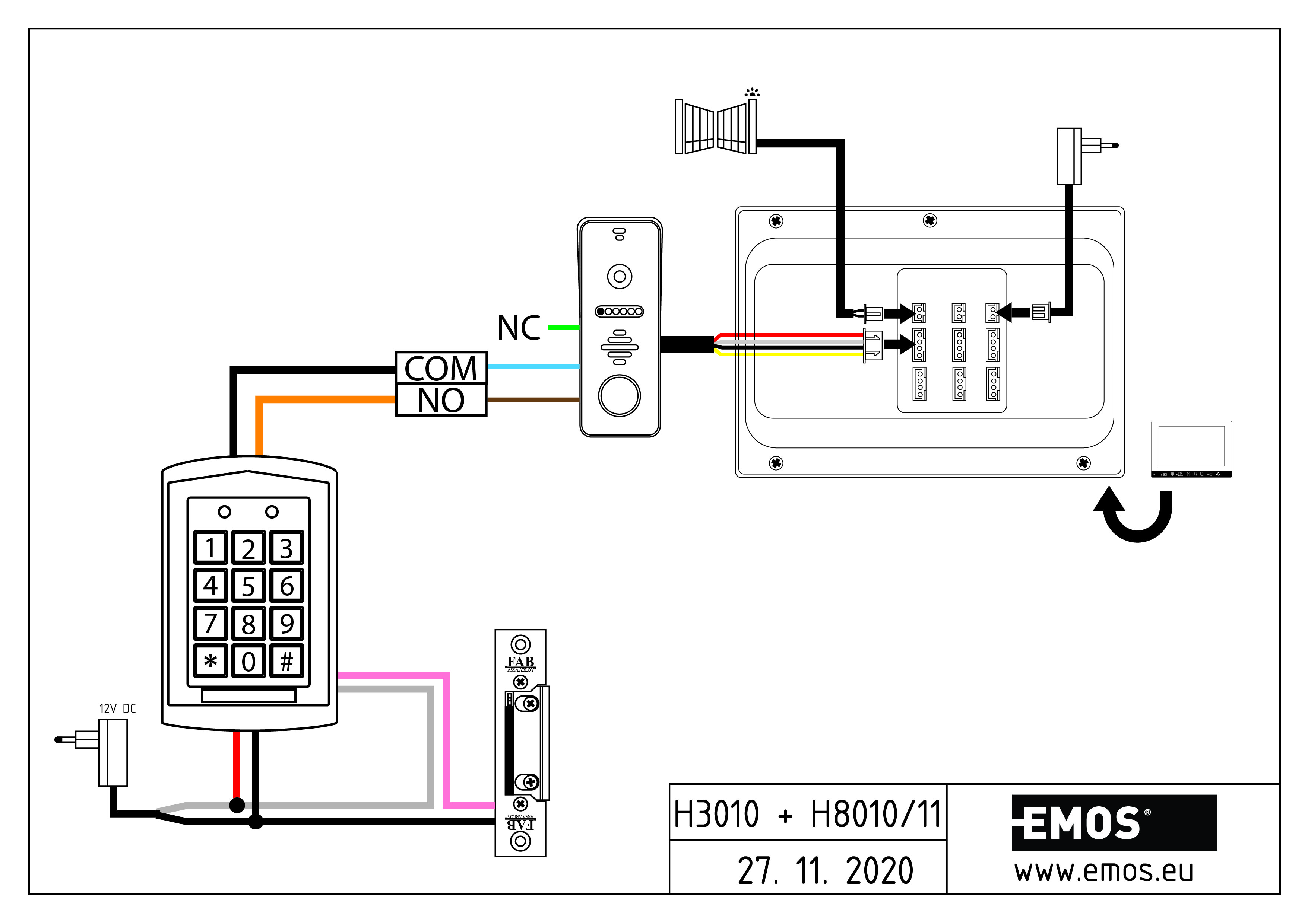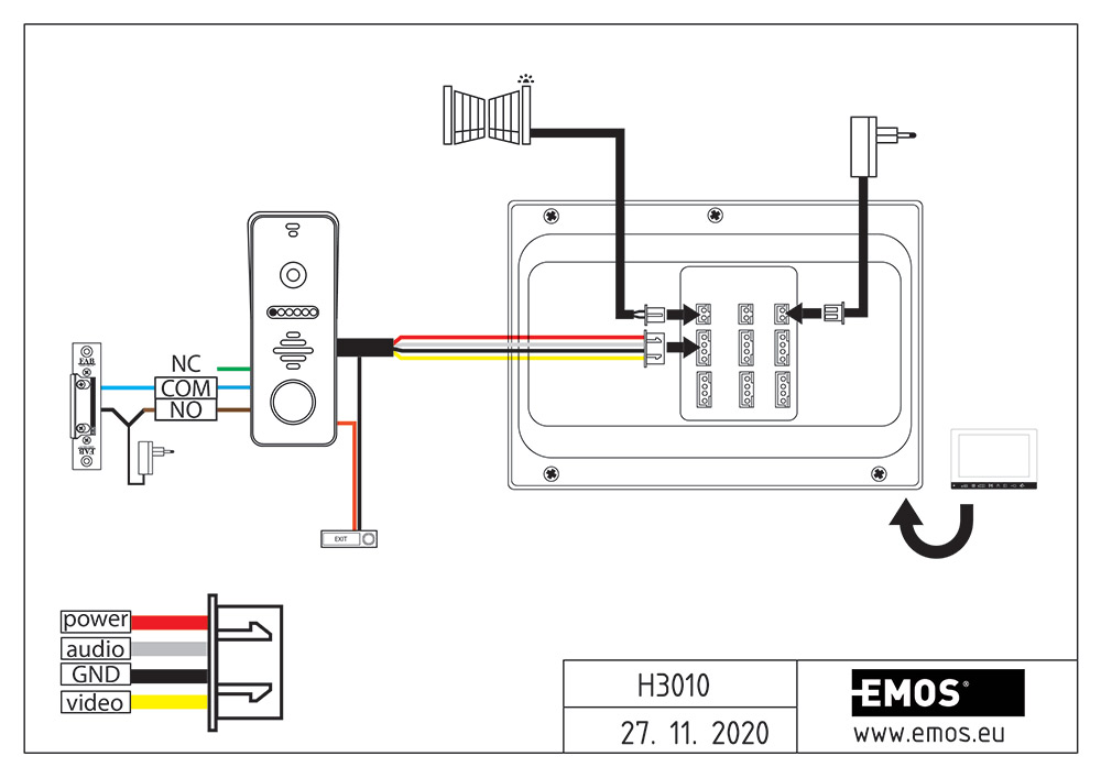 Wideodomofon EM-10AHD + monitor+zamek FAB1211MB+zasilacz