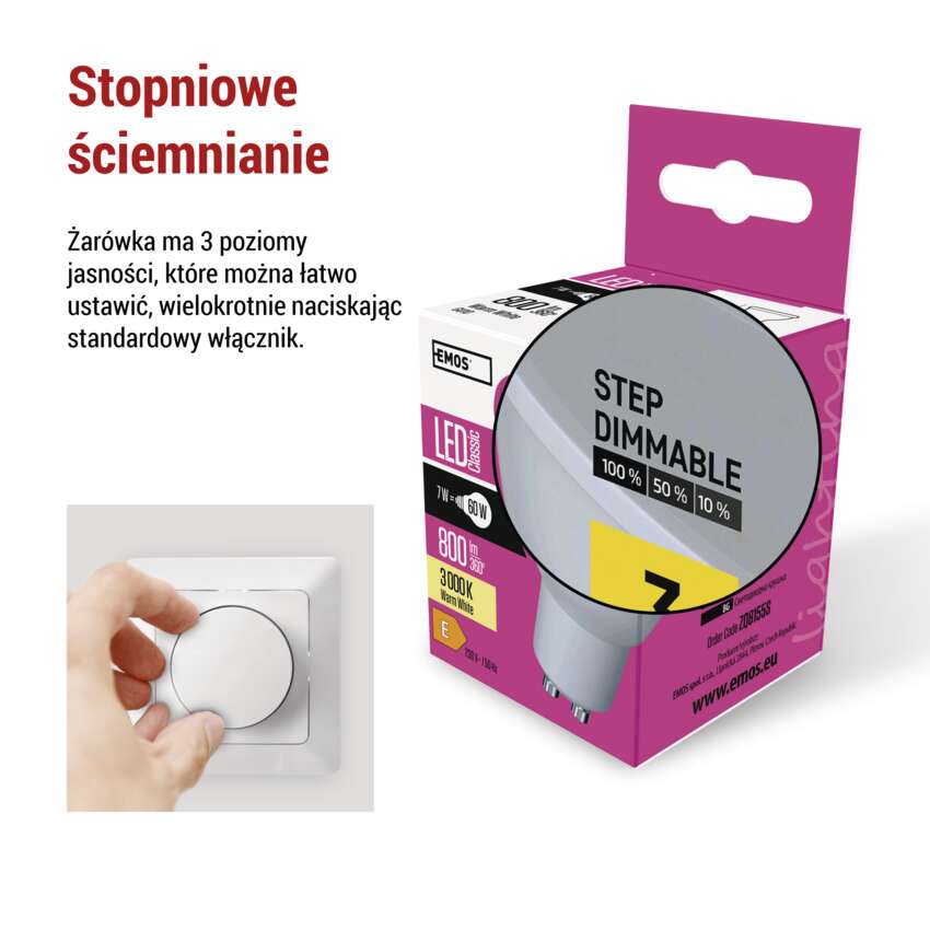 Powered by Smartsupp Żarówka LED Classic MR16 / GU10 / 7 W (60 W) / 800 lm / ciepła biel / ściemnialna 3x | EMOS.pl