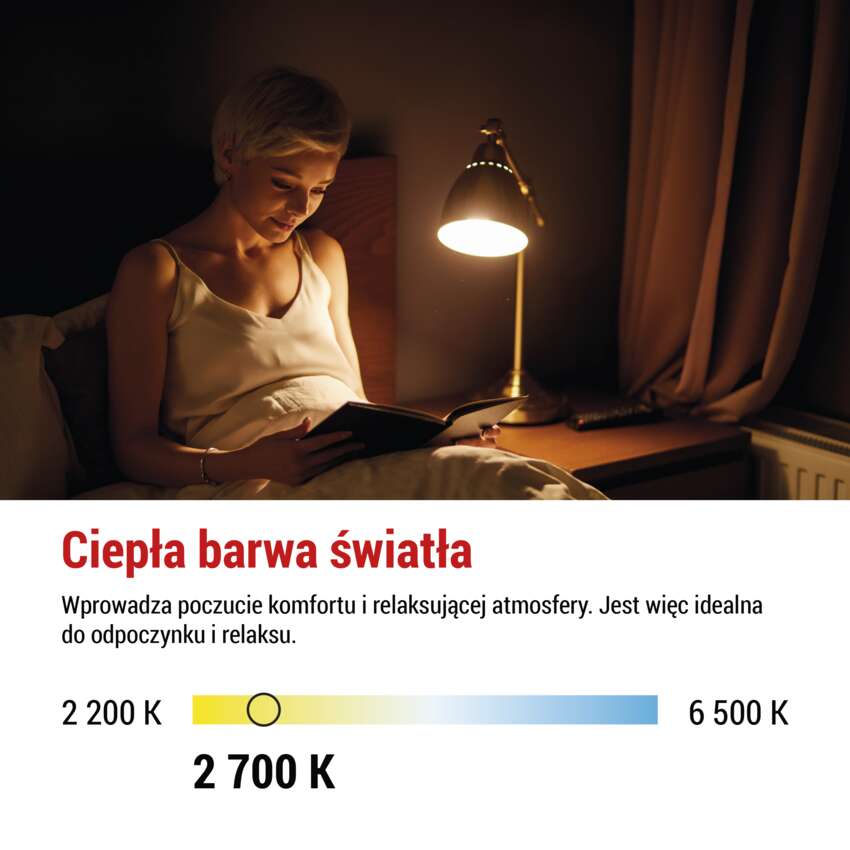 - ciepłe białe światło jest idealne do wieczornego relaksu i odprężenia w salonie lub sypialni