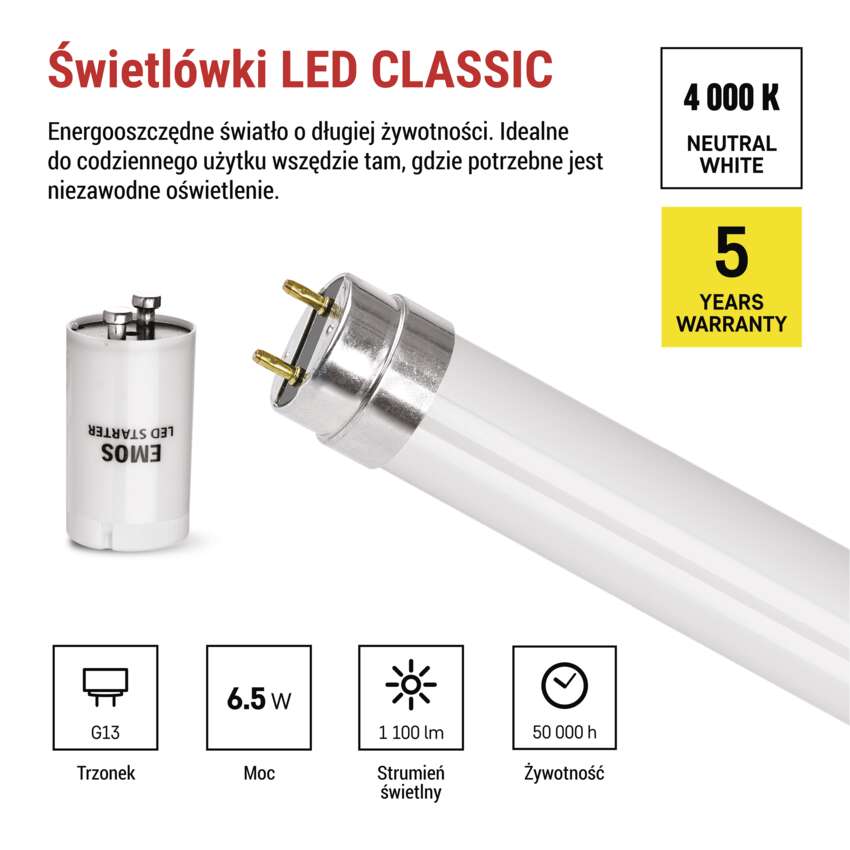 | trzonek (mocowanie żarówki) | G13 |