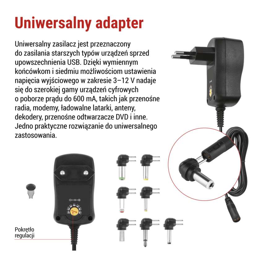 Zasilacz impulsowy 600mA z wymiennymi końcówkami